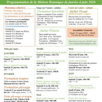 De janvier à juin, de nombreux ateliers, stages, sorties et chantiers participatifs ont été pensées pour vous. Télécharger la plaquette à imprimer …