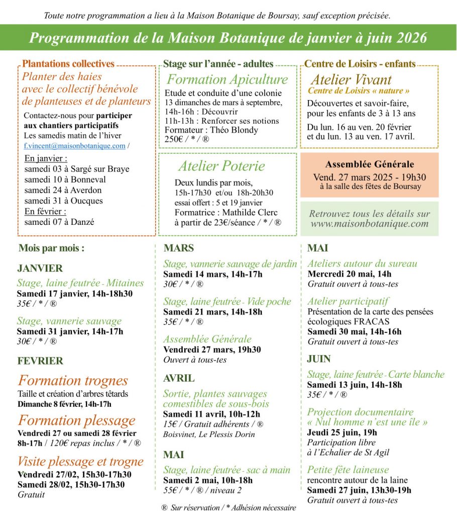 De janvier à juin, de nombreux ateliers, stages, sorties et chantiers participatifs ont été pensées pour vous.